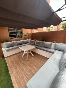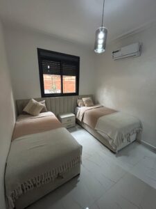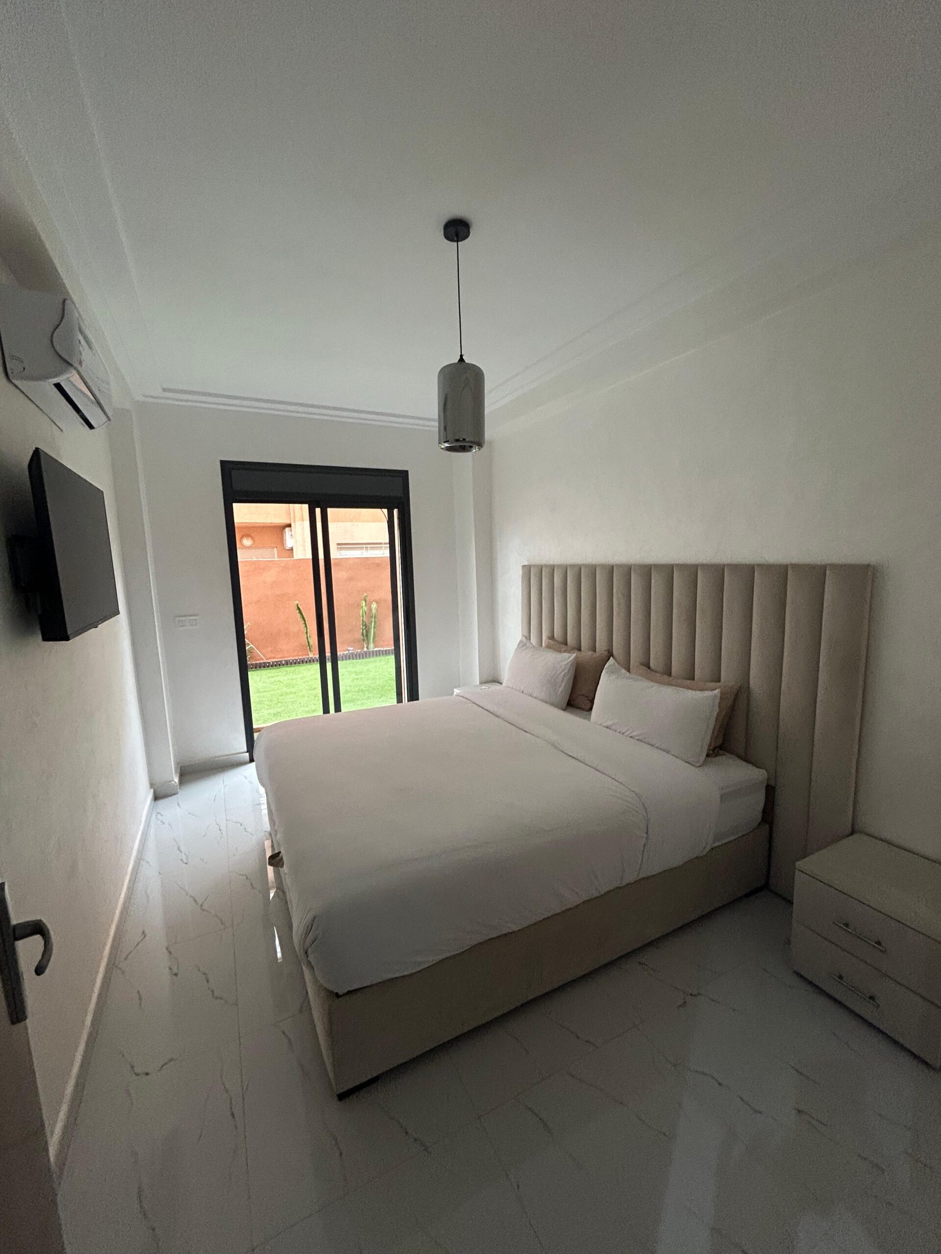 Disponible à la location longue durée (à partir de 3 mois), cet appartement se situe sur la route d’Amizmiz, à environ 25 minutes du centre-ville de Marrakech, dans une résidence calme et sécurisée. Entièrement refait à neuf et équipé, il se compose d’un salon lumineux, de deux chambres confortables, d’une cuisine aménagée et entièrement équipée, d’une salle d’eau et de toilettes séparées. L’extérieur offre une belle terrasse aménagée avec salon de jardin et jacuzzi privé, parfait pour profiter de moments de détente en toute tranquillité. Un bien idéal pour une location longue durée, alliant confort moderne et cadre apaisant à Marrakech.