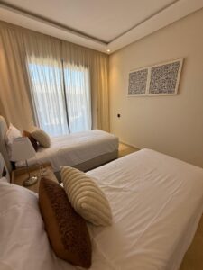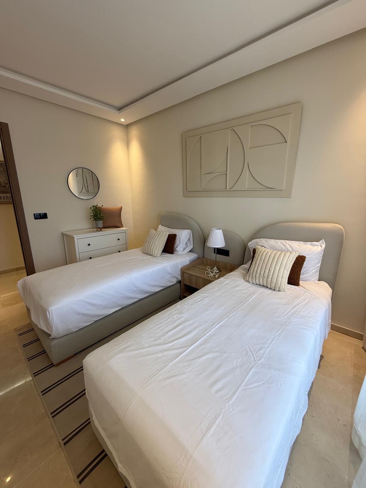 Quartier de la Gare, idéalement situé derrière la gare de Marrakech, en plein centre-ville, cet appartement se trouve dans une résidence moderne offrant des prestations haut de gamme : piscines intérieure et extérieure, ainsi qu’une salle de sport entièrement équipée. Le logement, spacieux et entièrement équipé, comprend trois chambres confortables et une décoration cosy et chaleureuse, parfaite pour un séjour en famille ou entre amis. Un véritable cocon en plein centre de Marrakech, alliant emplacement privilégié, confort et élégance. À partir de 1200 dirhams la nuitée