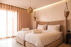 Centre-ville de Marrakech Découvrez ce superbe appartement moderne, idéalement situé en plein cœur du centre-ville de Marrakech, au sein d’une résidence sécurisée et élégante. Composé de trois chambres confortables, il offre de beaux volumes et un cadre de vie agréable, parfait pour un séjour ou une installation à long terme. Disponible à partir de 1 500 dirhams la nuitée, cet appartement combine emplacement privilégié, confort et style contemporain pour une expérience unique à Marrakech.