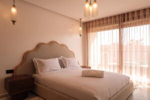 Centre-ville de Marrakech Découvrez ce superbe appartement moderne, idéalement situé en plein cœur du centre-ville de Marrakech, au sein d’une résidence sécurisée et élégante. Composé de trois chambres confortables, il offre de beaux volumes et un cadre de vie agréable, parfait pour un séjour ou une installation à long terme. Disponible à partir de 1 500 dirhams la nuitée, cet appartement combine emplacement privilégié, confort et style contemporain pour une expérience unique à Marrakech.