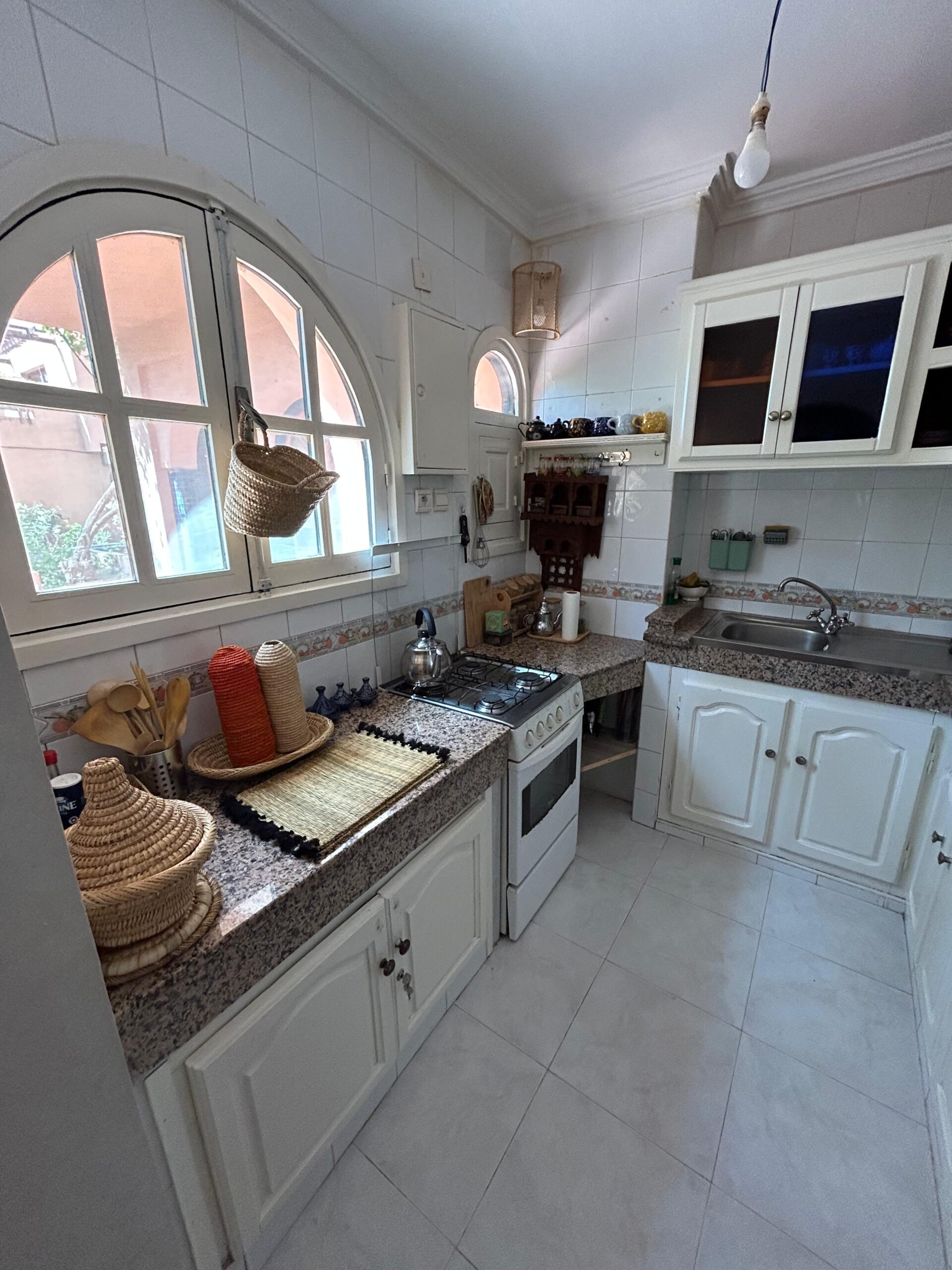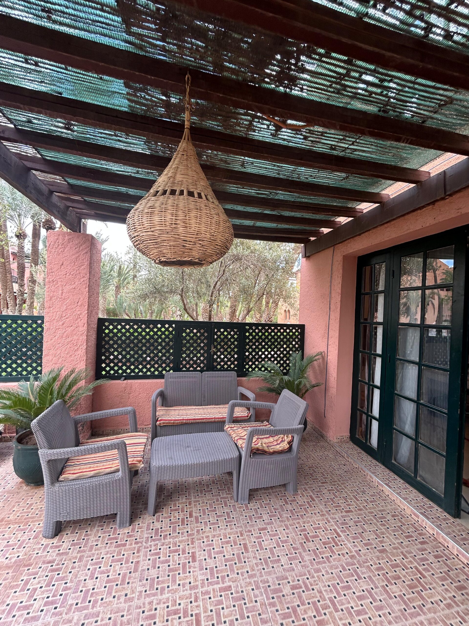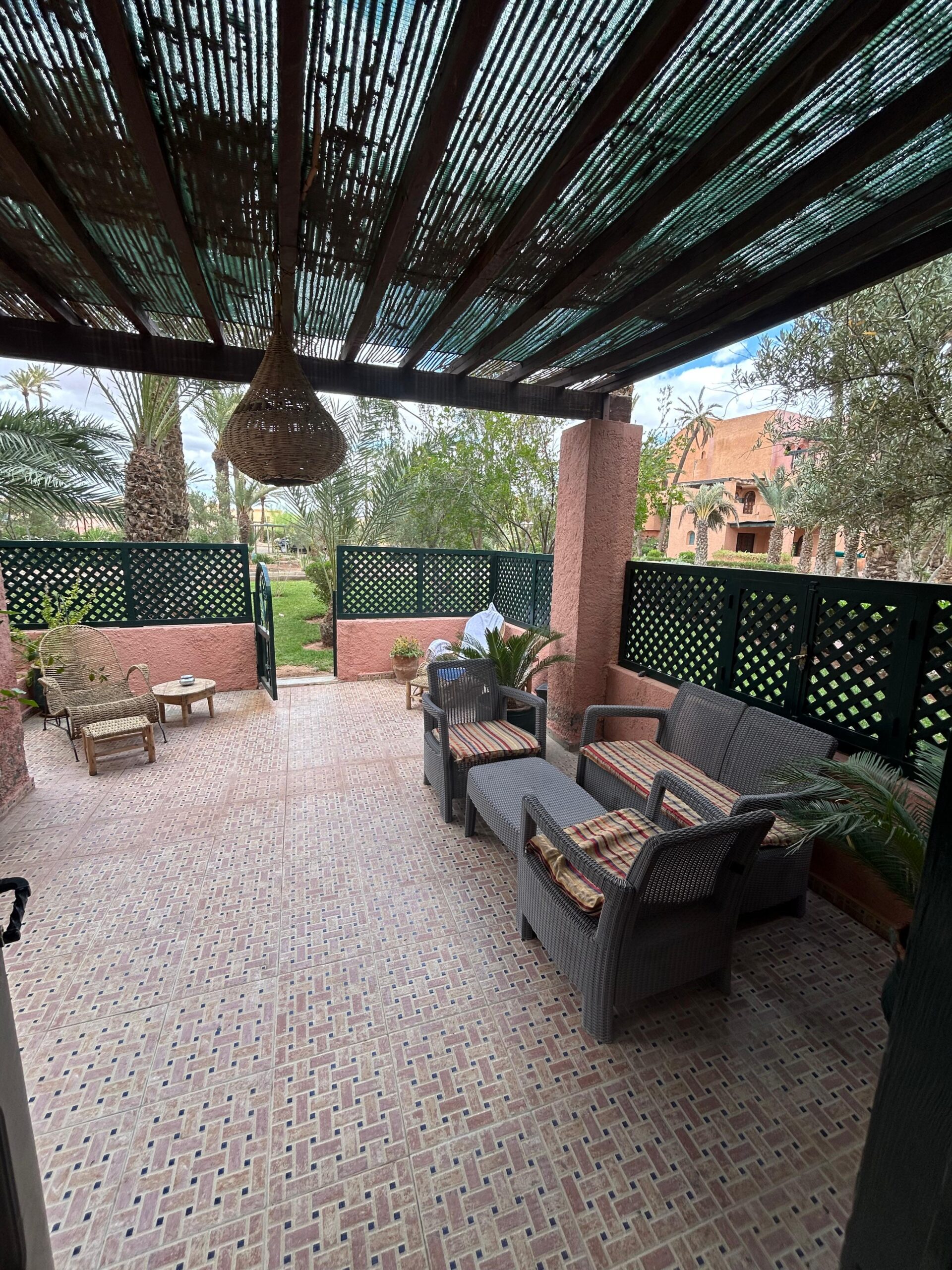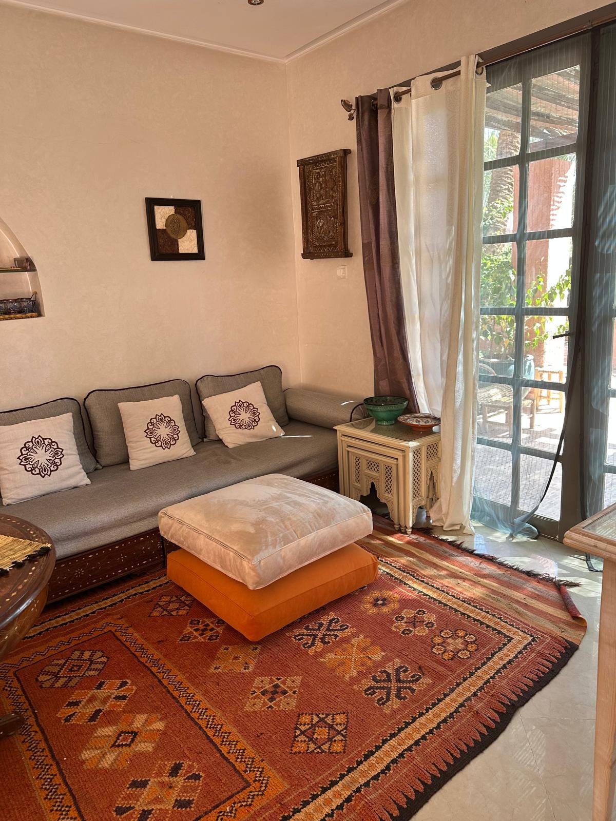 - La description: Maison traditionnelle marocaine – Au cœur de la palmeraieVivez une expérience authentique dans cette petite maison traditionnelle marocaine de plain-pied, située dans une résidence paisible entourée de palmiers et d’espaces verdoyants.Elle se compose de :• Une pièce de vie conviviale.• Deux chambres.• Une cuisine aménagée et équipée.• Une salle d’eau et des toilettes séparées.• Une terrasse cocooning, idéale pour se détendre.La résidence offre également un parking sécurisé et une grande piscine collective, parfaits pour profiter pleinement du climat de Marrakech dans un cadre calme et verdoyant.Afficher toute la description