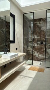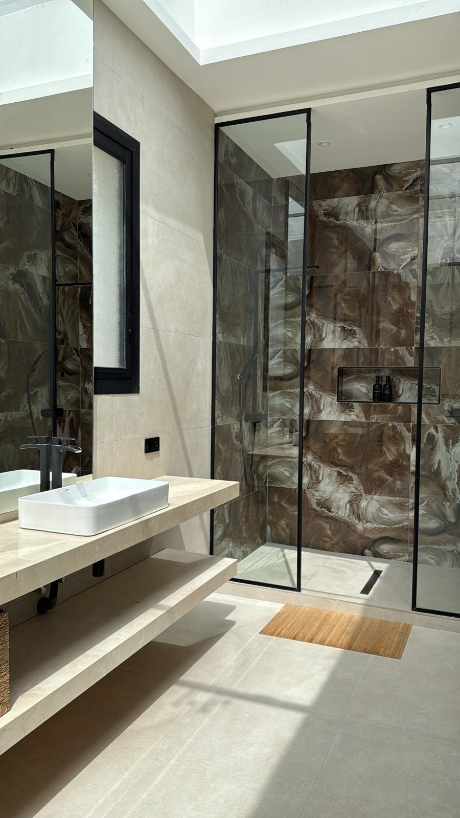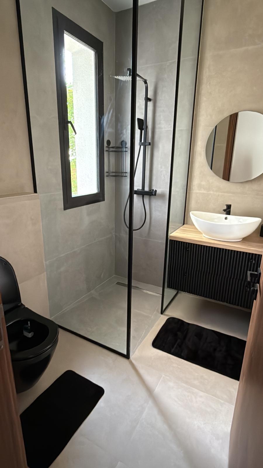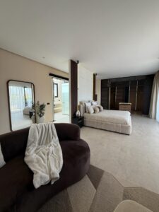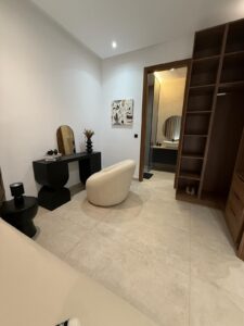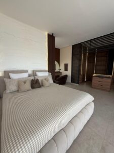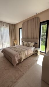 La décoration, à la fois sobre et sophistiquée, met en valeur des matériaux nobles et des lignes épurées, créant une atmosphère chaleureuse et apaisante. Les espaces de vie sont lumineux et ouverts sur l’extérieur, invitant à la détente.