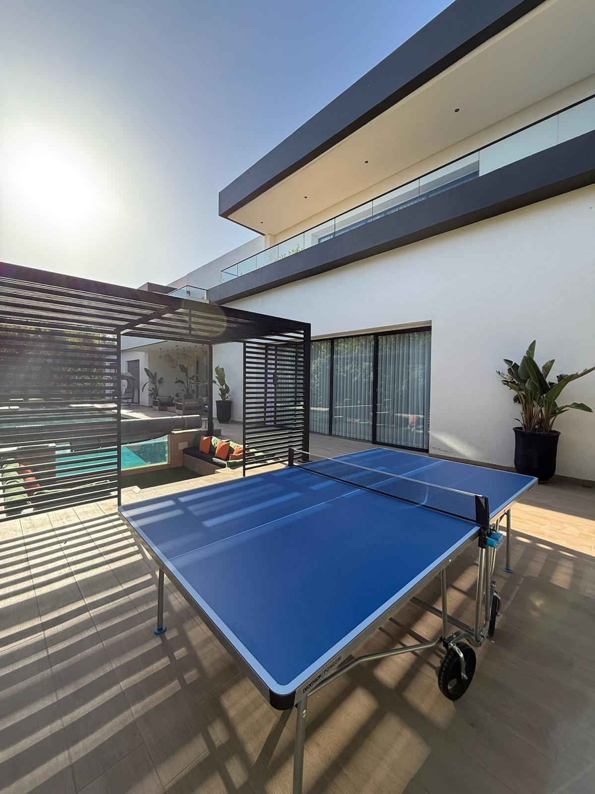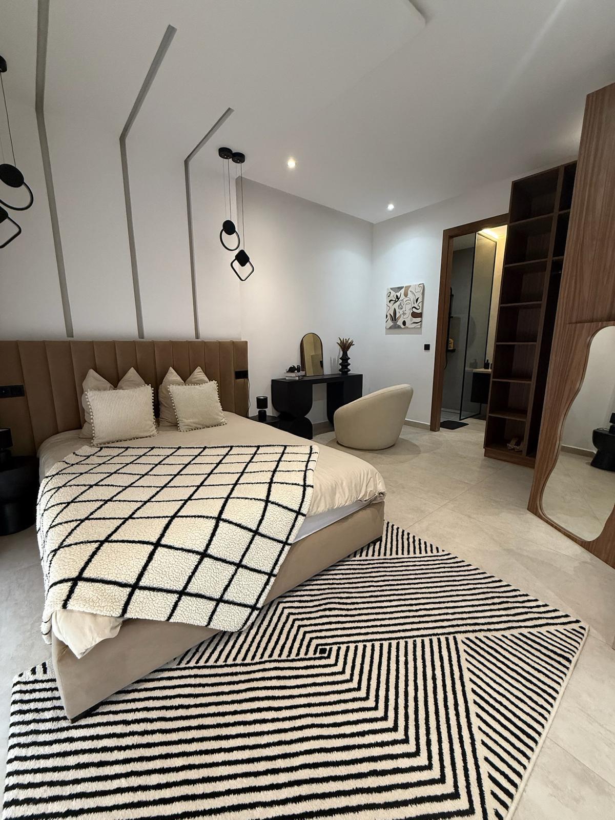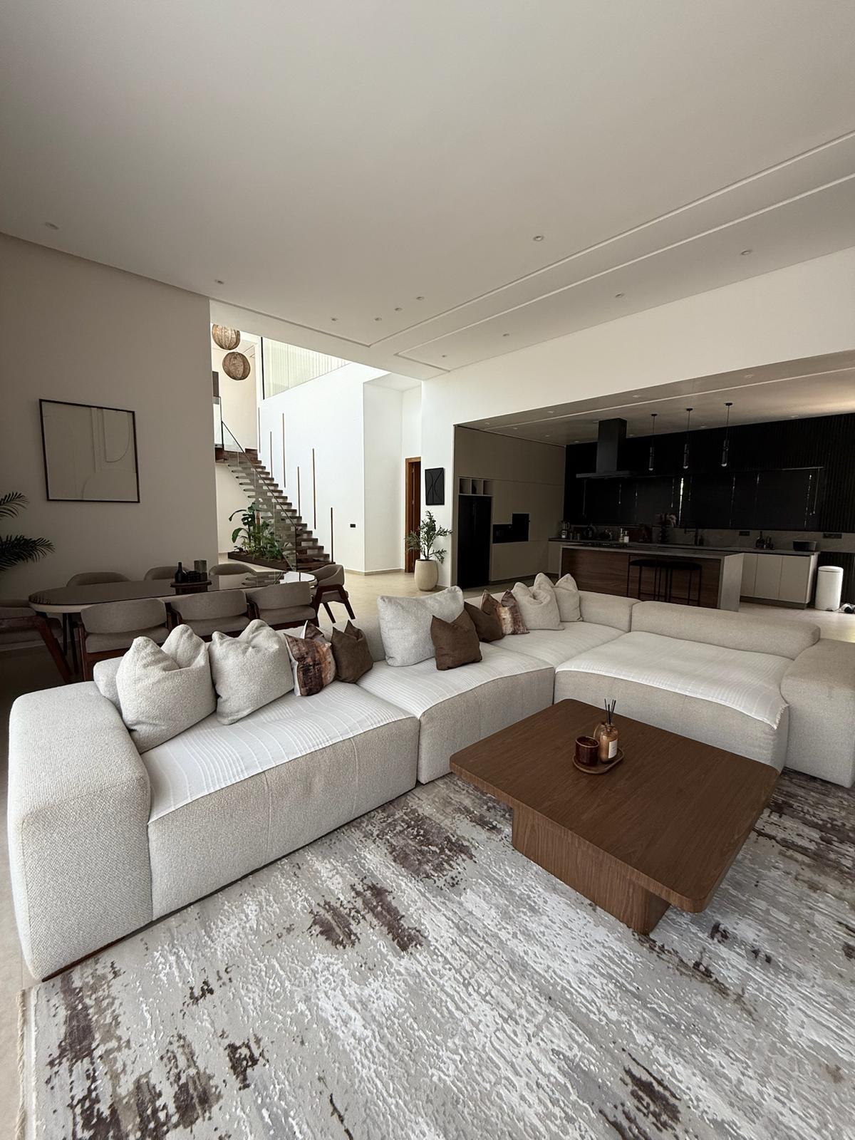 Nichée dans un environnement calme et sécurisé, cette somptueuse villa haut standing offre un cadre de vie exceptionnel alliant design contemporain et raffinement. La propriété se compose de 5 suites spacieuses, dont 2 master-rooms élégamment aménagées, offrant chacune un confort absolu et une intimité idéale pour ses occupants.