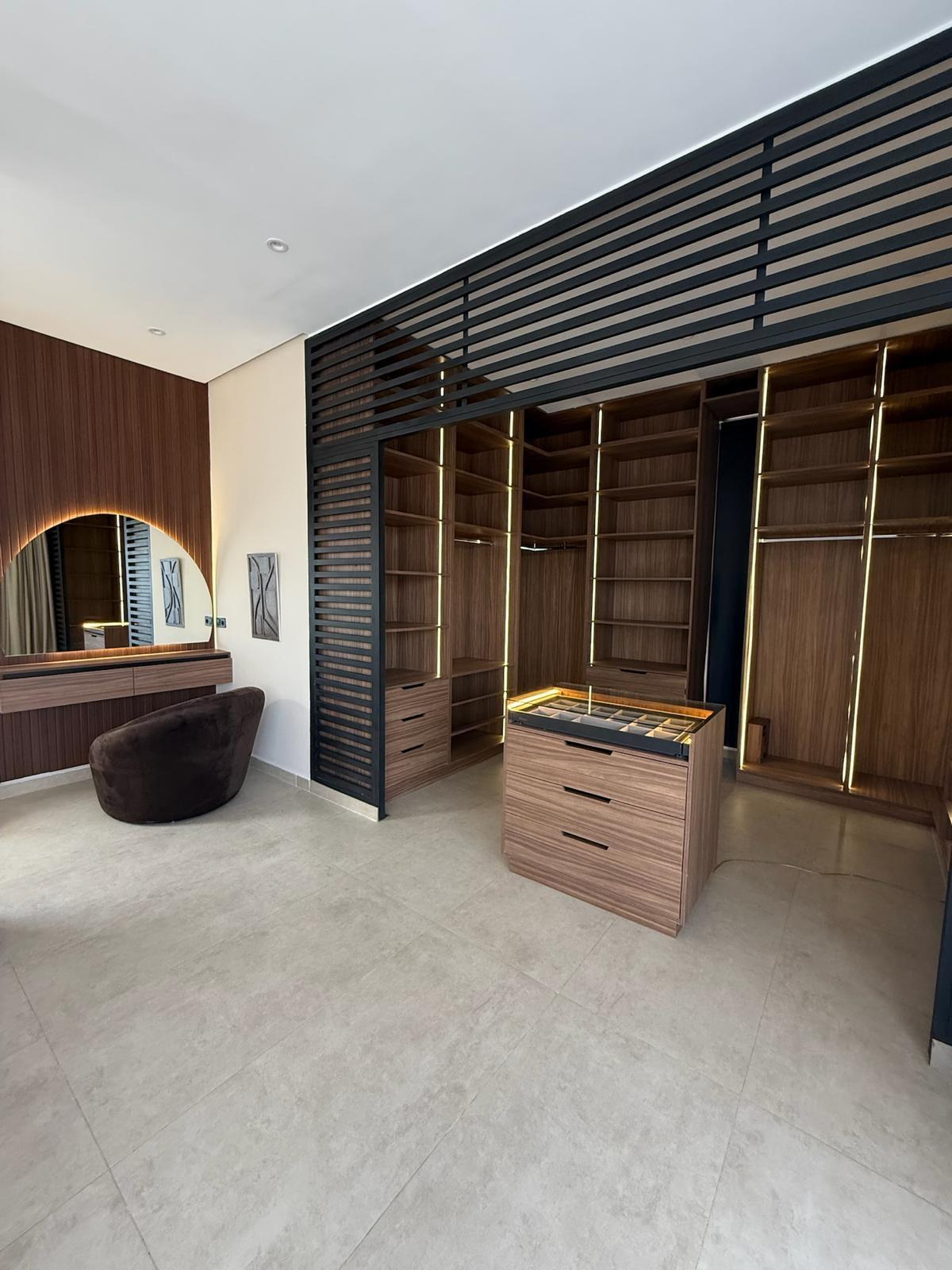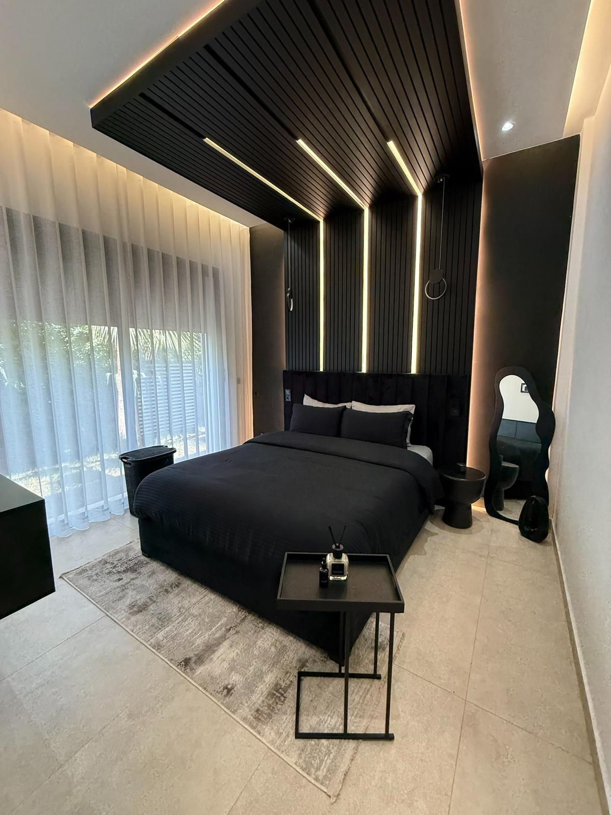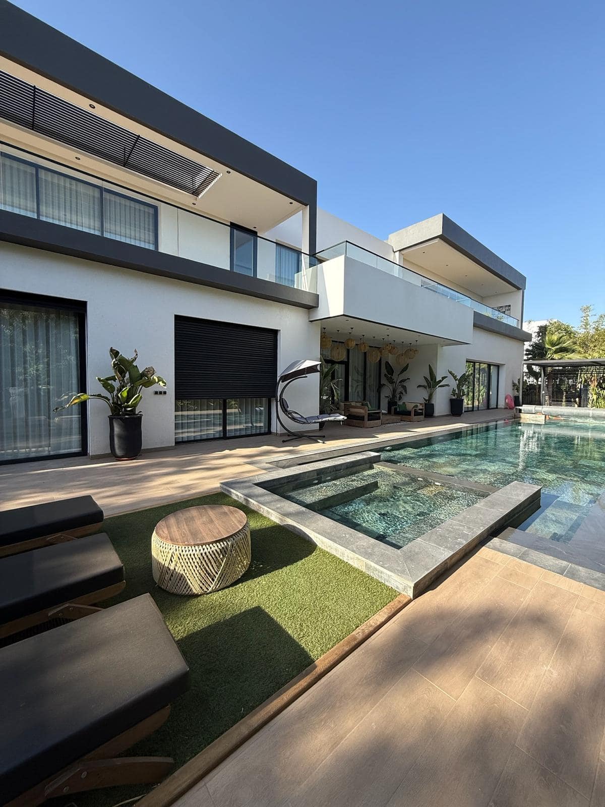 Nichée dans un environnement calme et sécurisé, cette somptueuse villa haut standing offre un cadre de vie exceptionnel alliant design contemporain et raffinement. La propriété se compose de 5 suites spacieuses, dont 2 master-rooms élégamment aménagées, offrant chacune un confort absolu et une intimité idéale pour ses occupants.