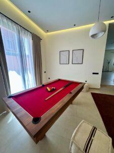 Au rez-de-chaussée, vous découvrirez une entrée accueillante, un double salon spacieux et lumineux, un espace salle à manger convivial, une cuisine moderne entièrement aménagée et équipée, des toilettes invités ainsi qu’un espace de jeux avec billard.