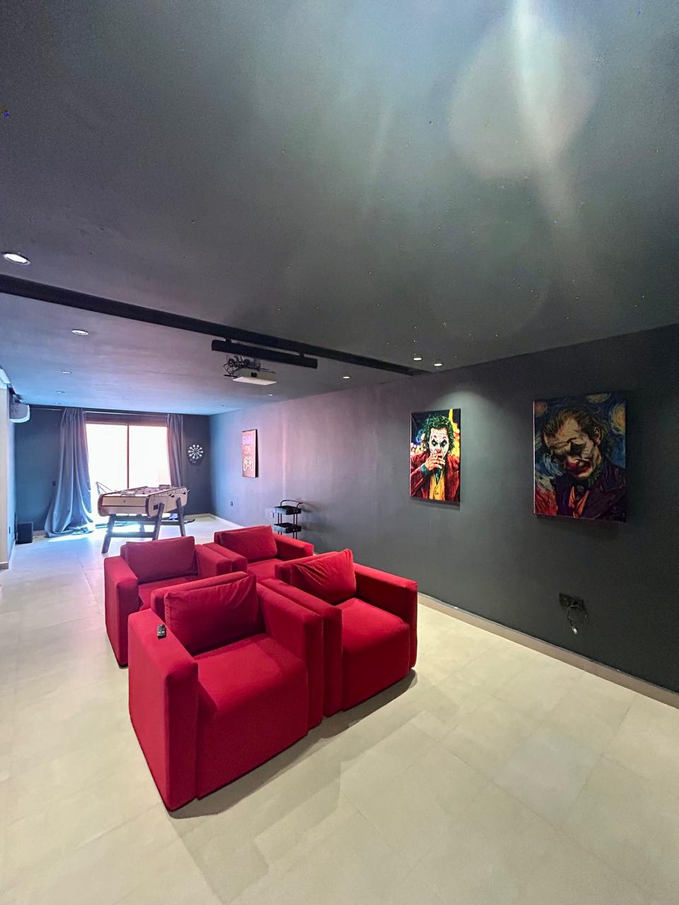 À l’extérieur, profitez d’une agréable terrasse avec piscine chauffée et d’un coin jardin, idéal pour se détendre en toute tranquillité.Le sous-sol propose une salle de cinéma, une salle d’eau avec toilettes, un espace de jeux avec baby-foot ainsi qu’un accès à une terrasse.